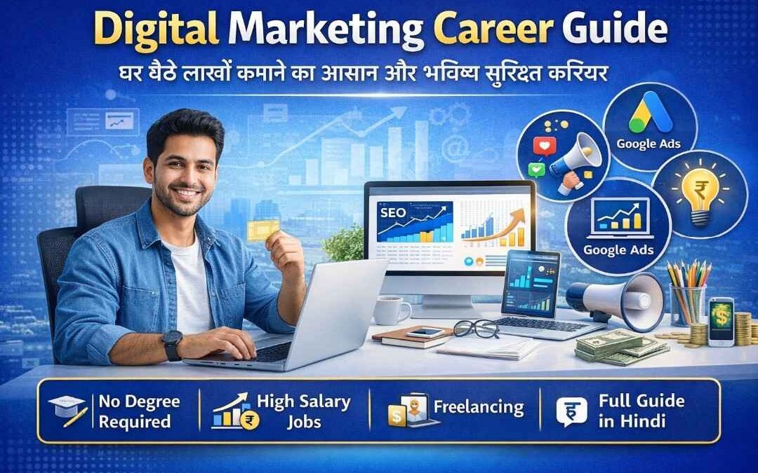 आज का समय पूरी तरह डिजिटल हो चुका है। हर छोटा-बड़ा बिजनेस अब ऑनलाइन आ रहा है और यही वजह है कि एक ऐसा करियर तेजी से उभर रहा है जो आने वाले कई वर्षों तक लगातार बढ़ता रहेगा। यही करियर है डिजिटल मार्केटिंग। अगर आप ऐसा career ढूंढ रहे हैं जिसमें जल्दी growth मिले, … Continue reading Digital Marketing Career Guide: घर बैठे लाखों कमाने का सबसे आसान और भविष्य सुरक्षित करियर